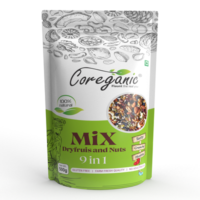 A healthy blend of carefully chosen dry fruits and crunchy nuts, our premium Mixed Dry Fruits and Nuts blend is designed to provide taste, nutrition, and energy with every bite. A great snack for any time of day, this wholesome combination contains sunflower seeds, almonds, cashews, black raisins and pistachios, dried figs, pumpkin seeds, green raisins, and cranberries.